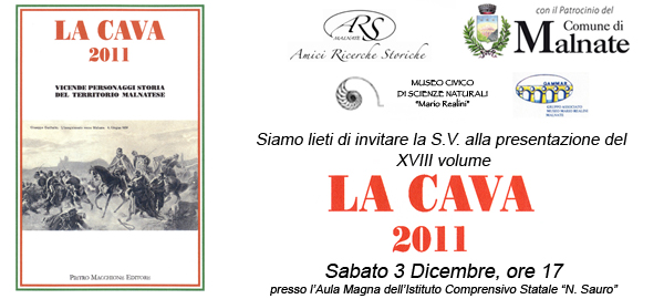 Quest’importante iniziativa letteraria è frutto dell’impegno dell’associazione Amici delle Ricerche Storiche di Malnate, che ha così dato il via a una nuova collana editoriale intitolata «Le monografie della Cava», dal nome della sua pubblicazione che ogni anno ripercorre momenti importanti della vicenda storica malnatese.