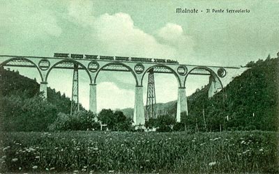 Il nuovo ponte in cemento armato e il ponte in ferro prima di essere abbattuto (1928) - collezione A. Ambrosetti