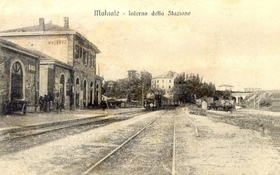 L'interno della Stazione delle Ferrovie Nord con in arrivo un treno diretto a Varese (1915) - collezione R. Avanzi