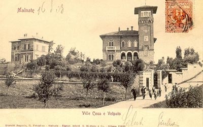 Villa Cova e villa Volpato (a sinistra), sulla salita di via De Mohr, viste dall'incrocio con viale Trieste (1903) - collezione A. Ambrosetti