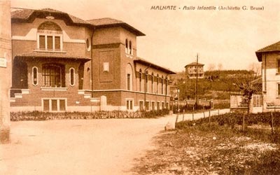 Sullo sfondo, sulla collina: Villa Rossi; in primo piano, sulla destra il cosiddetto “prato del Comune” e sulla sinistra l'asilo infantile “Umberto I” (anni '30) - archivio Ossola